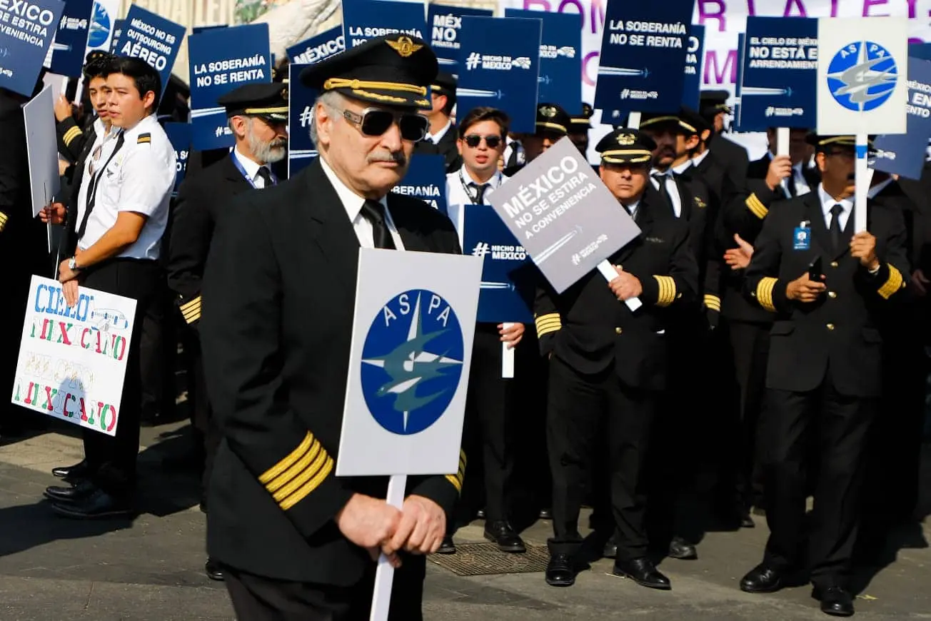 Pilotos de la Asociación Sindical de Pilotos Aviadores de México (ASPA) y del Colegio de Pilotos Aviadores de México realizaron este lunes una manifestación pacífica frente a la Secretaría de Infraestructura, Comunicaciones y Transportes (SICT), ubicada en Avenida Universidad y Miguel Ángel de Quevedo, en la Ciudad de México.